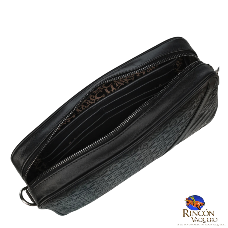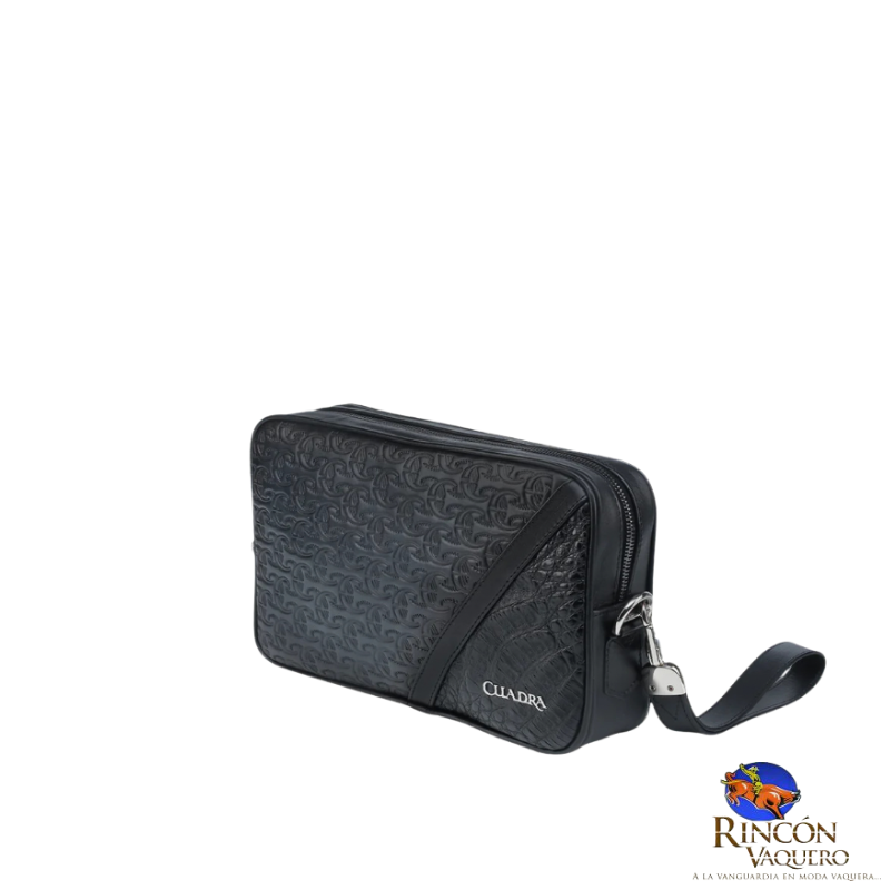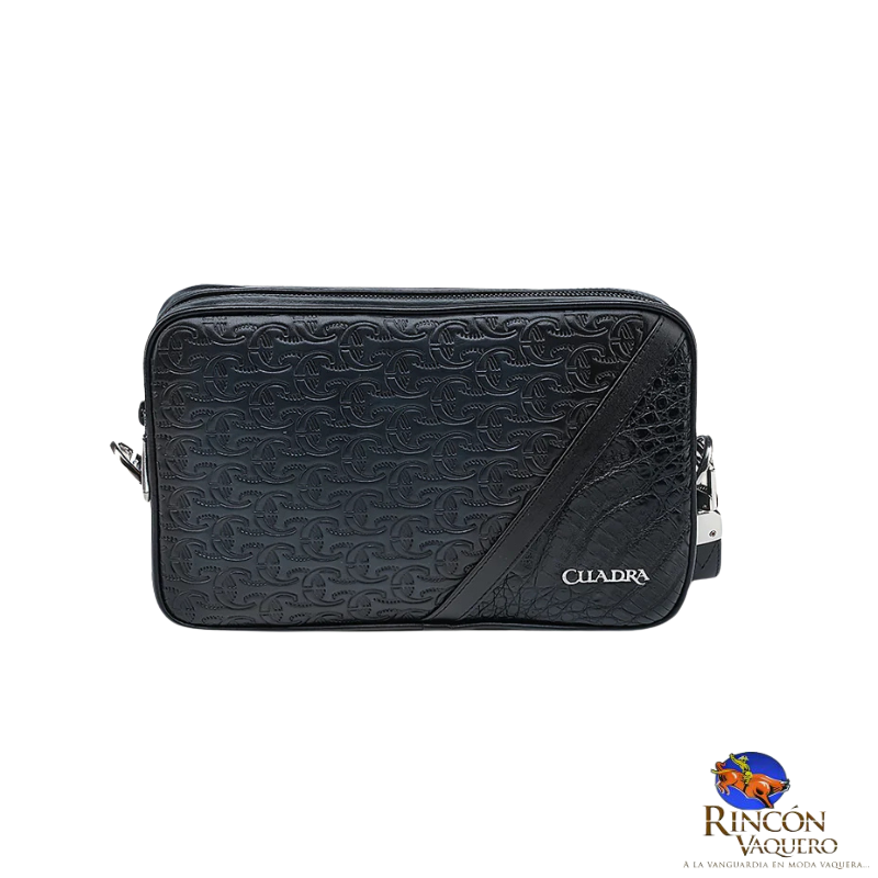 Documentera para caballero en piel genuina de fuscus y piel de bovino. Presenta detalles de alto relieve al frente, aplicación metálica de logotipo Cuadra y bolsillo con cierre en la parte trasera. En su interior cuenta con ocho espacios para tarjetas y dos compartimentos, uno de ellos con cierre. Incluye asa corta desmontable. Asegurada con cierre. Color azul.