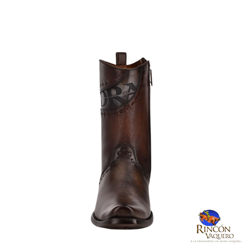 Bota para caballero en piel genuina de bovino. Con detalles de tejido artesanal y grabado láser de logo Cuadra en tonos contrastantes.