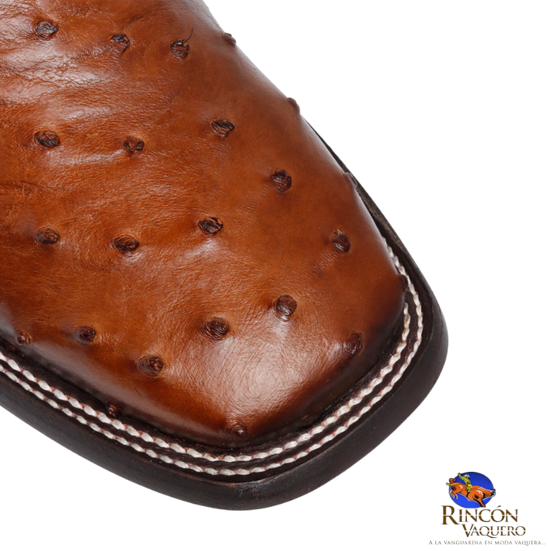 Bota Cuadra 3Z09A1 Hombre Vaquera Cafe. En piel genuina de avestruz y piel de bovino. Sobre el tubo presenta grabado láser de logotipo Cuadra y detalles de bordado. Orejas con aplicaciones de piel de avestruz. Con suela de cuero.