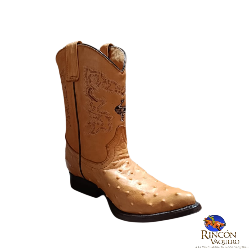 Bota Potrillos niño Avestruz Mantequilla en piel genuina. Diseño exclusivo y elegante que aporta distinción y estilo western infantil premium.