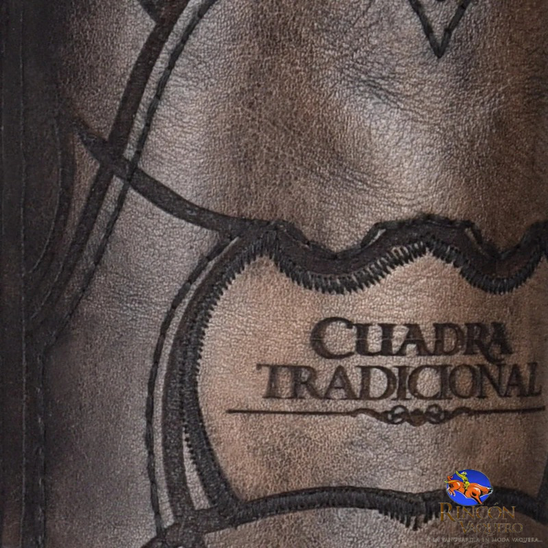 Bota tradicional para caballero en piel genuina de fuscus. Diseño con detalles grabados en tubo, una combinación de líneas orgánicas en conjunto con el exclusivo logotipo Cuadra. Modelo pintado a mano.
