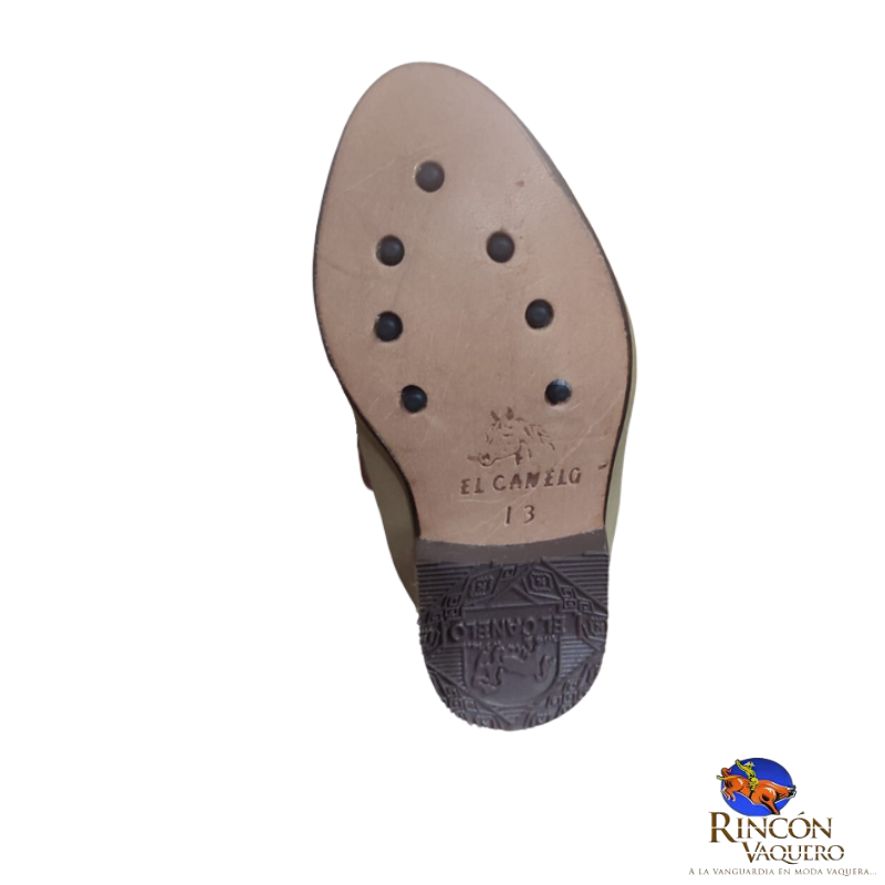 - Suela: Suela de cuero con tachones que proporciona tracción y estabilidad en diferentes superficies.