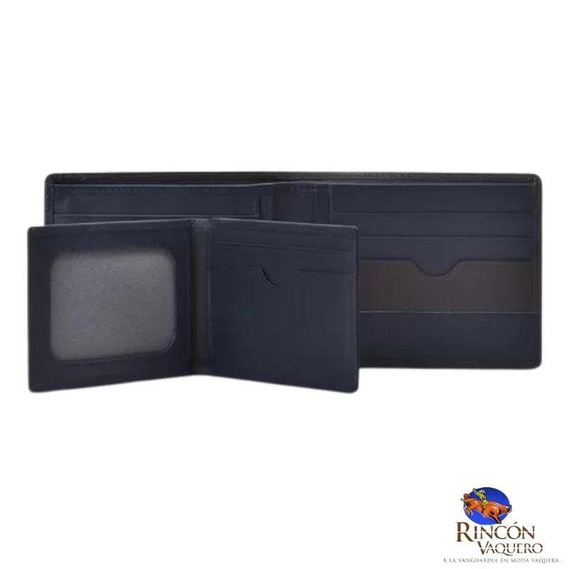 Billetera Cuadra B5453RS: piel de res con bordado acolchado y monograma grabado; tarjetero removible con 4 ranuras, 10 ranuras internas y 2 compartimentos para billetes.