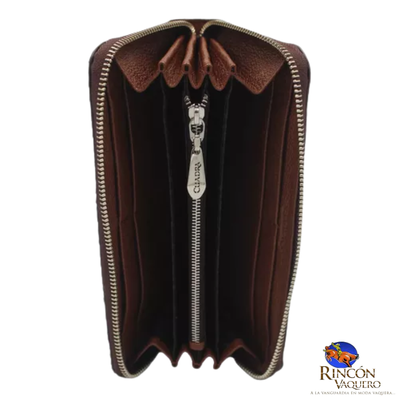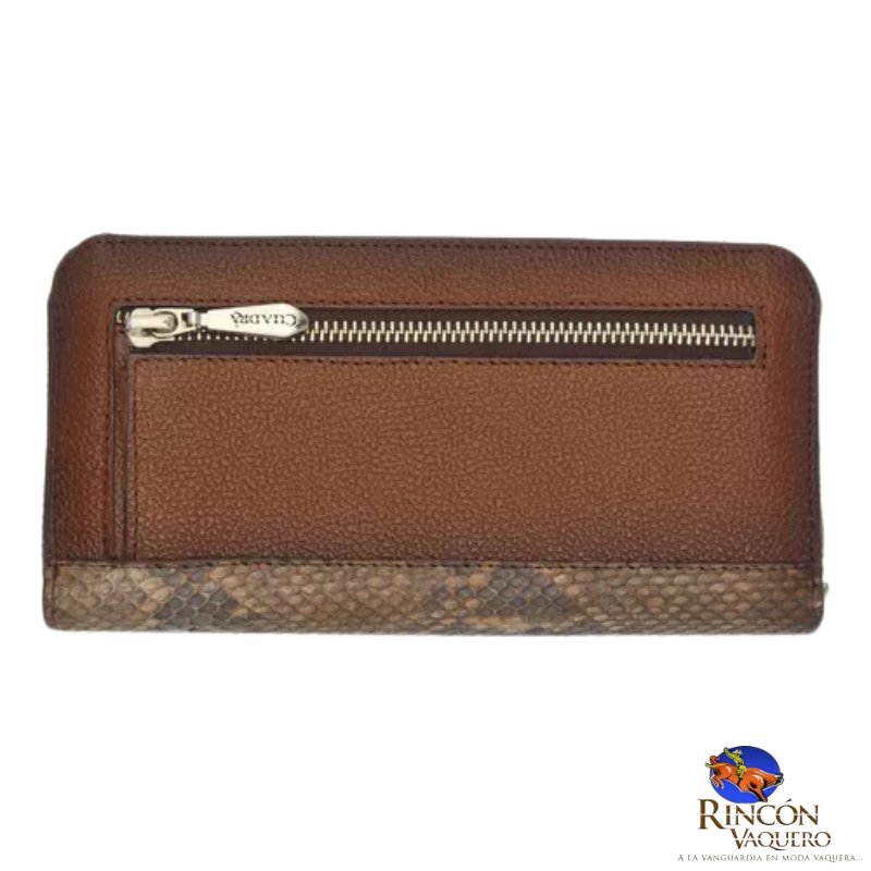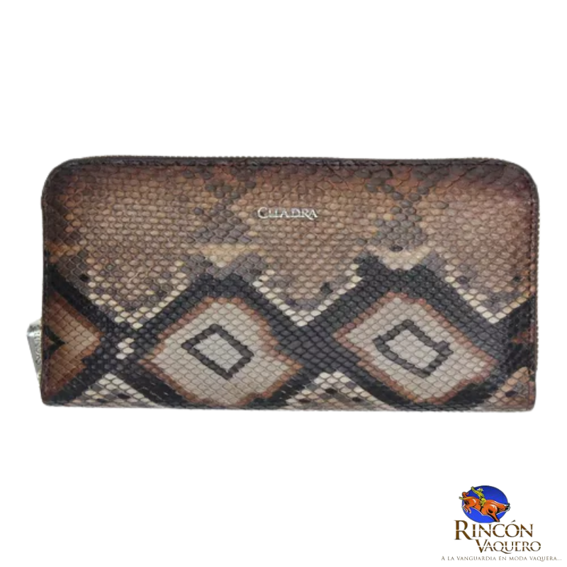 Billetera Cuadra BD242PH para dama: piel genuina de pitón y bovino; compartimentos para billetes, ranuras para tarjetas y monedero con cierre. Elegancia exótica y funcional.