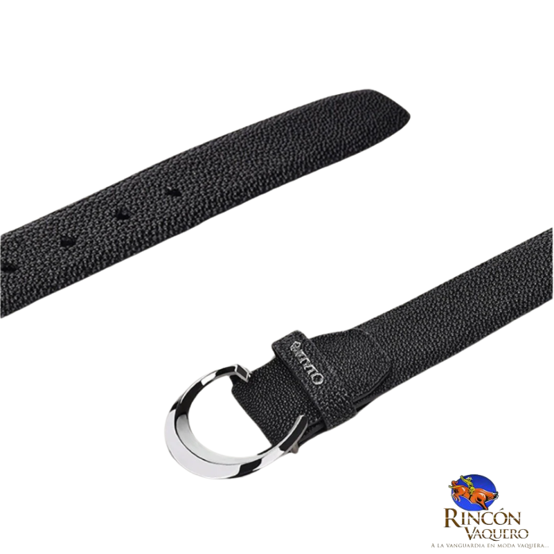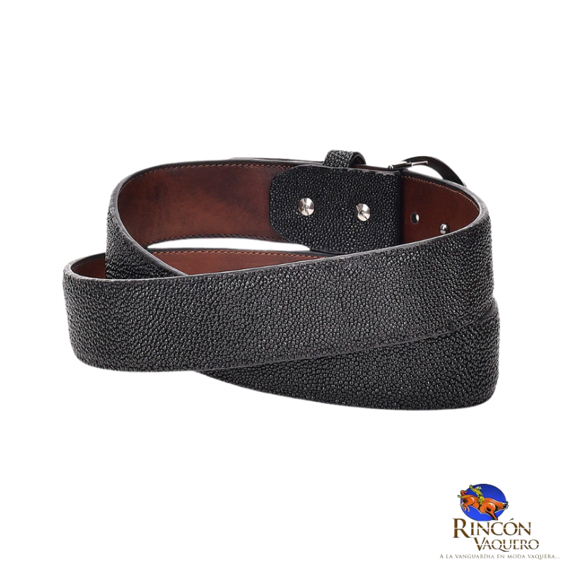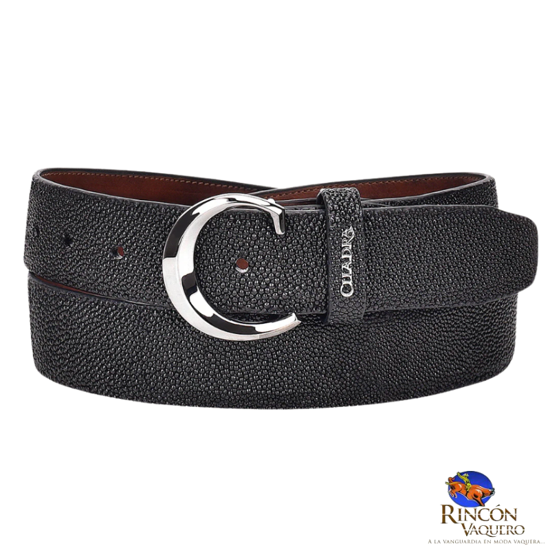Cinturón para caballero en piel genuina de mantarraya CS381MA. Presenta hebilla metálica del monograma Cuadra. Color negro. Las marcas y cicatrices que puede presentar lejos de ser considerados como defecto demuestran la autenticidad de cada producto.