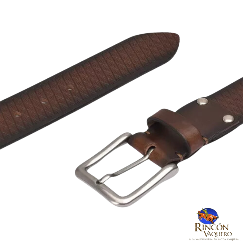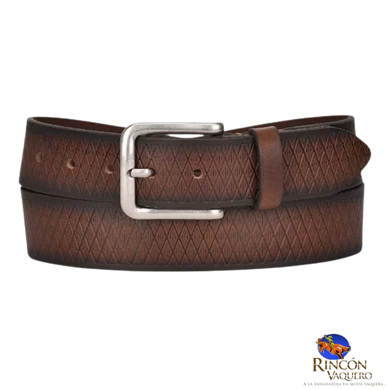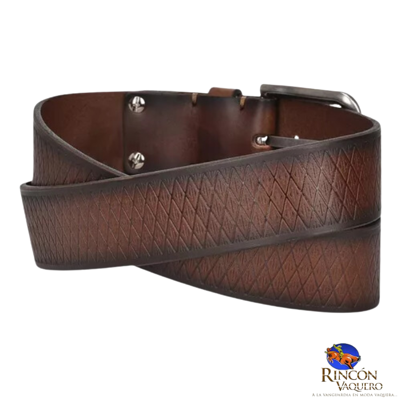 Cinturón casual para caballero en piel de bovino con grabado en motivos geométricos CS4265R. Con hebilla metálica con acabado vintage. Las marcas y cicatrices que puede presentar lejos de ser considerados como defecto demuestran la autenticidad de cada producto.