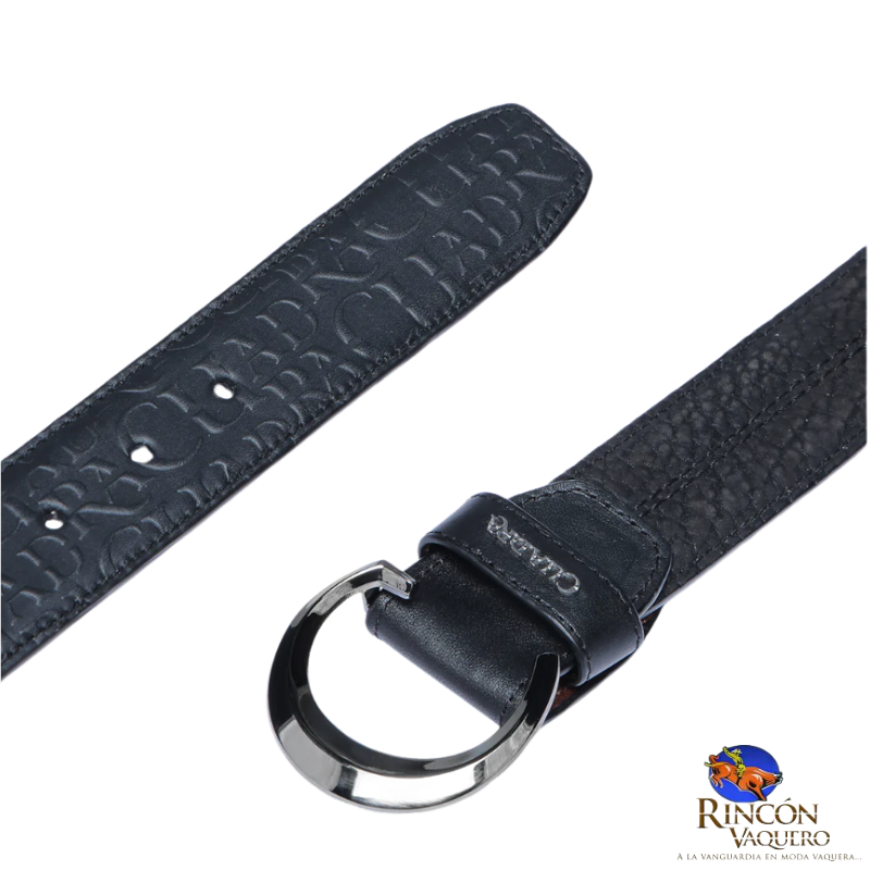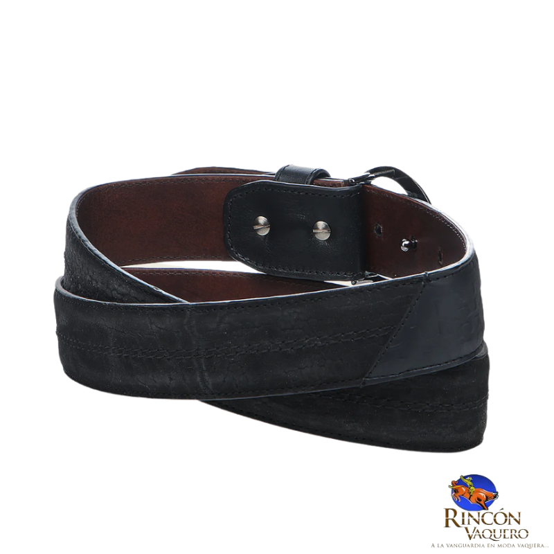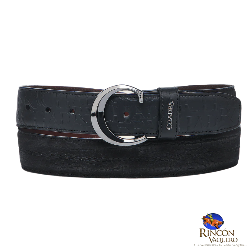 Cinturón casual para caballero en piel genuina de bovino. Presenta texturas y colores contrastantes y fino bordado a lo largo de la tira. Con grabado en alto relieve del logotipo Cuadra al final de la tira. Hebilla de 38mm personalizada con el logo de la marca. Forro en piel genuina de bovino.
