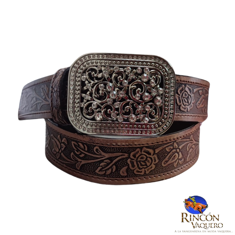 Cinto Mario Montana para dama modelo 18010121. Diseñado en piel genuina con finos grabados y hebilla metálica elegante. Un accesorio western que combina estilo, calidad y sofisticación en cada detalle.
