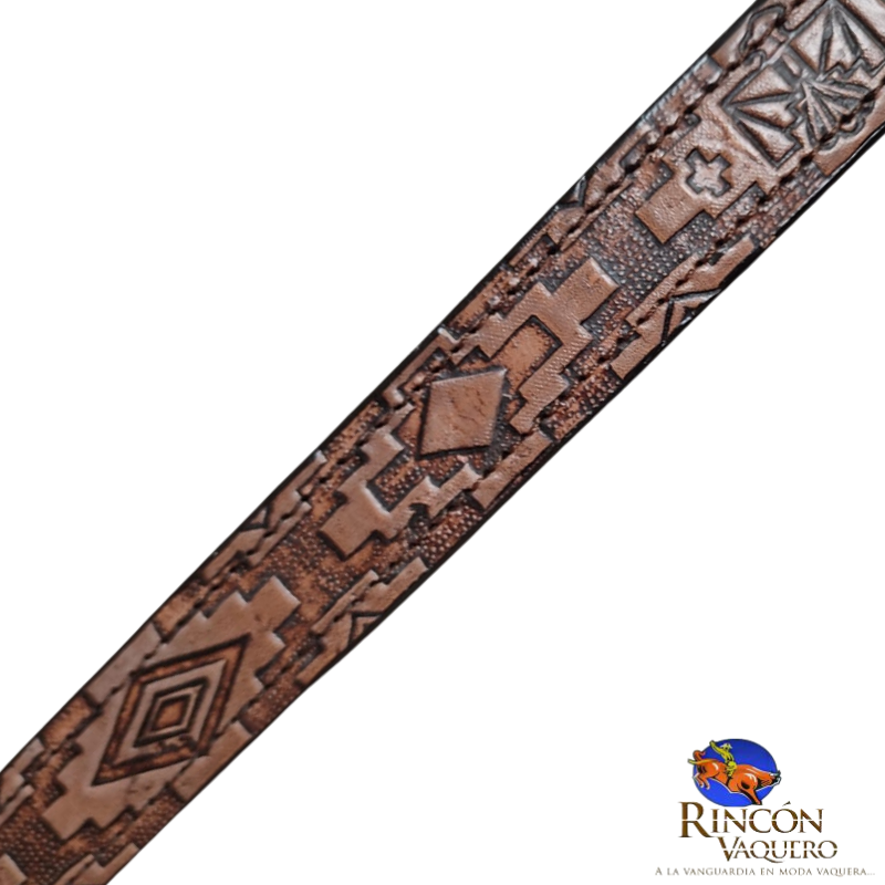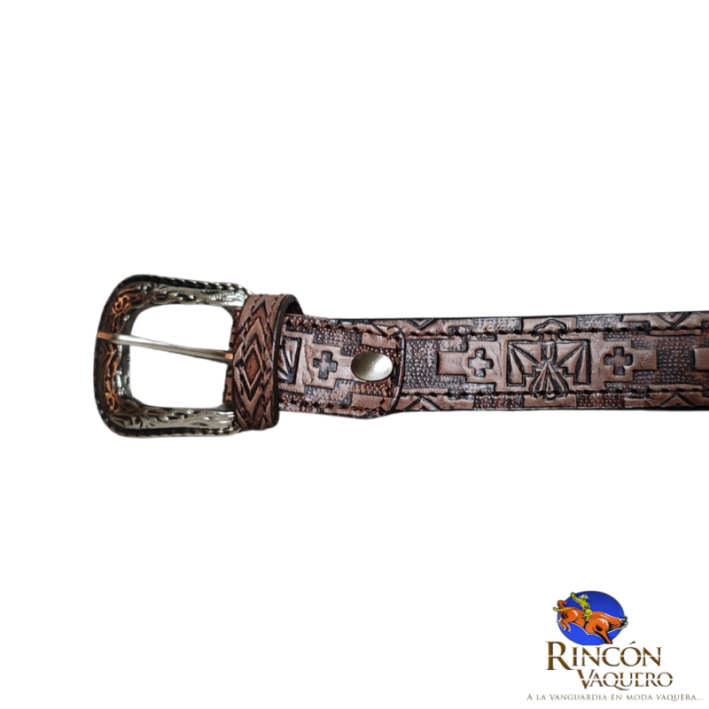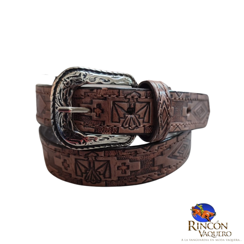Cinto Mario Montana para niño modelo 14011221. Elaborado con piel genuina y hebilla metálica decorada, ideal para complementar el estilo vaquero de los más pequeños. ¡Calidad, elegancia y tradición en cada detalle!