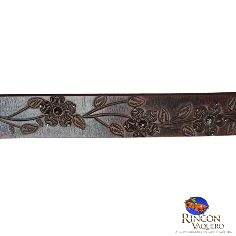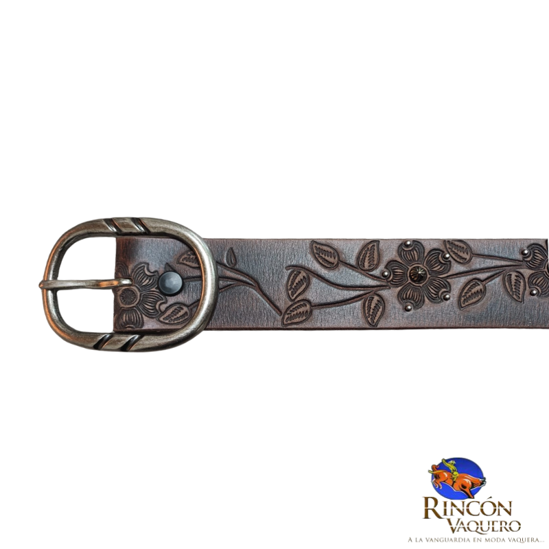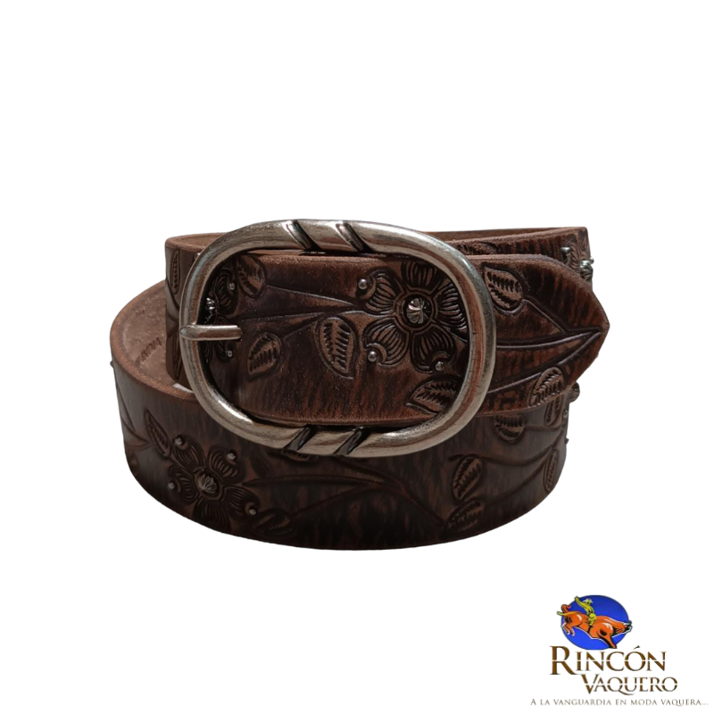 Cinto Roper para dama modelo 9649300. Elaborado en piel genuina con detalles grabados y hebilla metálica decorativa, combina elegancia femenina con el auténtico estilo western. Ideal para complementar cualquier look vaquero con distinción y calidad.