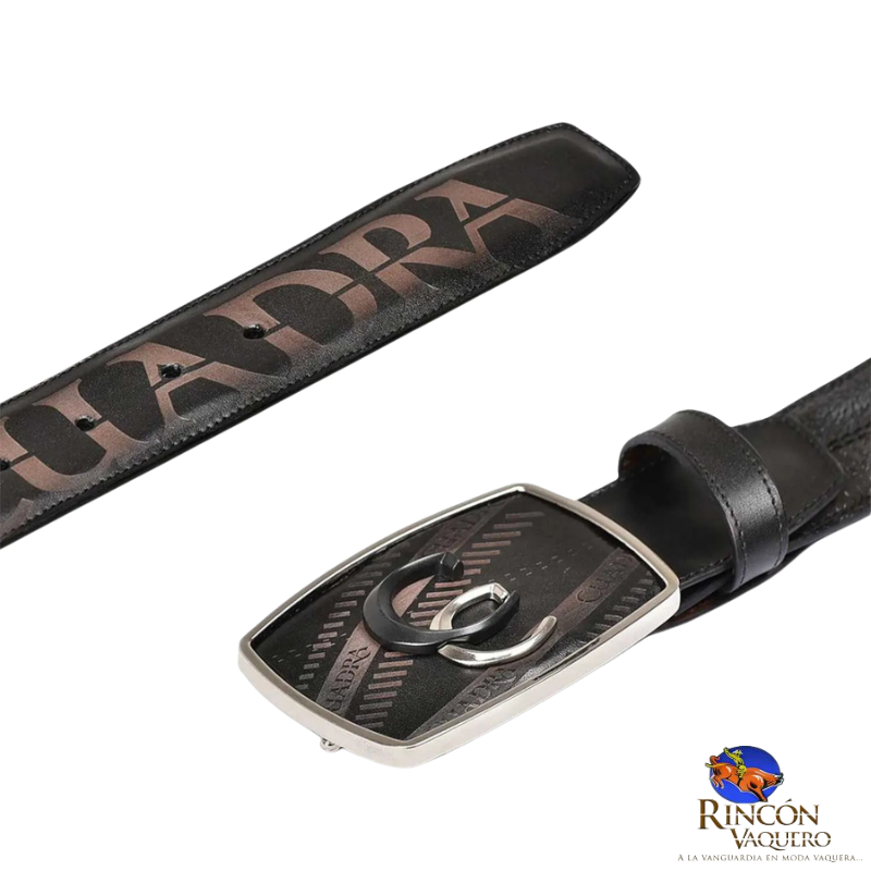 Cinturón vaquero para caballero en piel de bovino. Presenta grabado láser de logotipo Cuadra a lo largo y al final de la tira. Hebilla forrada con grabado láser y aplicación metálica doble de monograma Cuadra. Color gris. Las marcas y cicatrices que puede presentar lejos de ser considerados como defecto demuestran la autenticidad de cada producto.