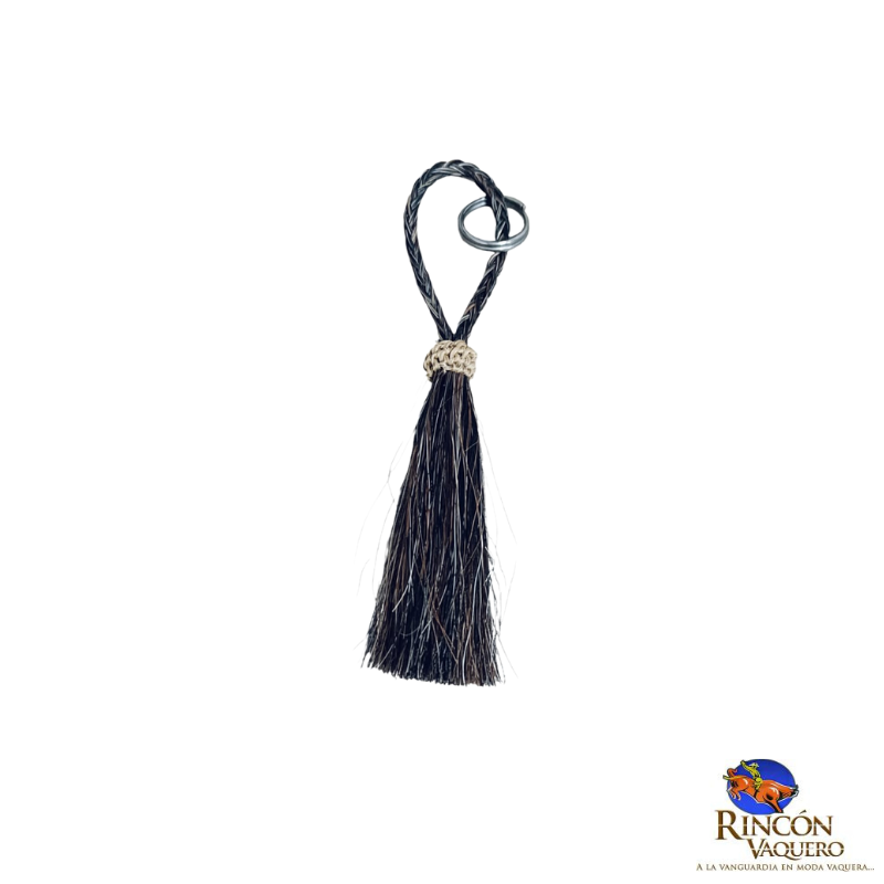 Confeccionado artesanalmente, este llavero de cerda natural representa una tradición vaquera auténtica. Su trenzado superior y detalle en fibra tejida aportan un toque rústico y elegante, mientras que la cerda aporta textura y movimiento únicos. Ideal como adorno para llaves, bolsos o incluso como elemento decorativo, es una pieza que conecta con la identidad del campo y el estilo vaquero más genuino.