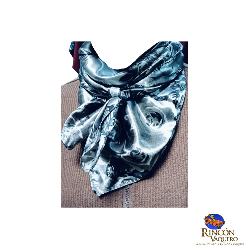 Mascada modelo WR1008 de la colección Rodeo Drive, con diseño floral de rosas en tonos grises sobre fondo neutro. El patrón combina trazos suaves y detalles sombreados que aportan profundidad visual. Confeccionada en tejido ligero y de textura suave, ofrece fluidez y comodidad. Su tamaño versátil permite distintos estilos de uso, como accesorio de cuello, bolso o cabello. La paleta monocromática aporta un estilo sobrio con matices elegantes y contemporáneos.