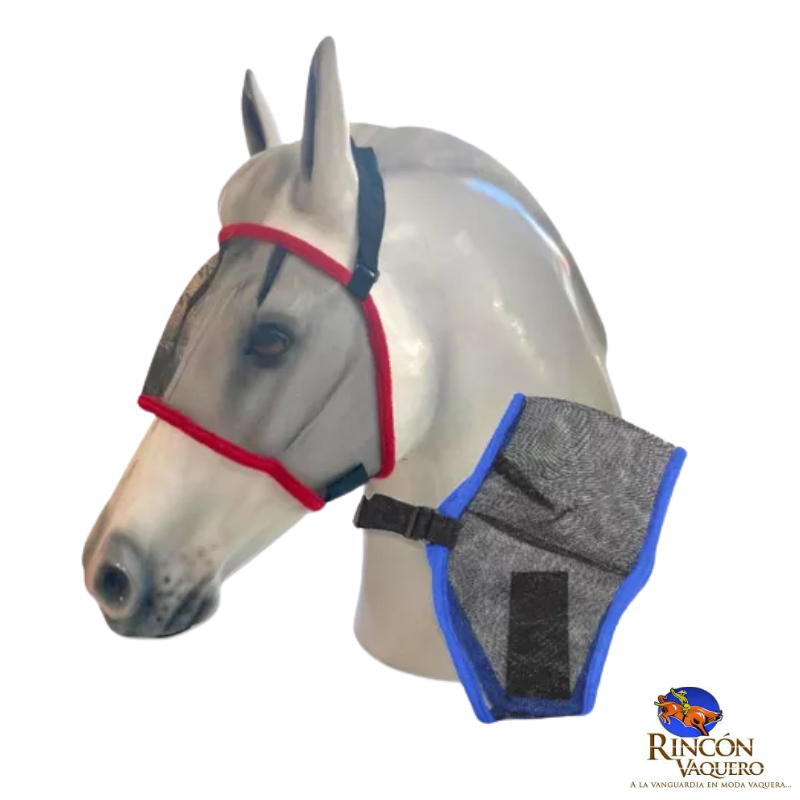 Máscara Cubremoscos M361, diseñada para proteger a los caballos de insectos, especialmente moscas, durante actividades al aire libre o en el establo. Confeccionada en materiales resistentes y transpirables que permiten una buena ventilación y visibilidad. Su estructura ligera se ajusta cómodamente a la cabeza del caballo sin causar molestias. Ofrece cobertura eficaz en la zona ocular y parte del rostro, contribuyendo al bienestar del animal en climas cálidos o ambientes con alta presencia de insectos.