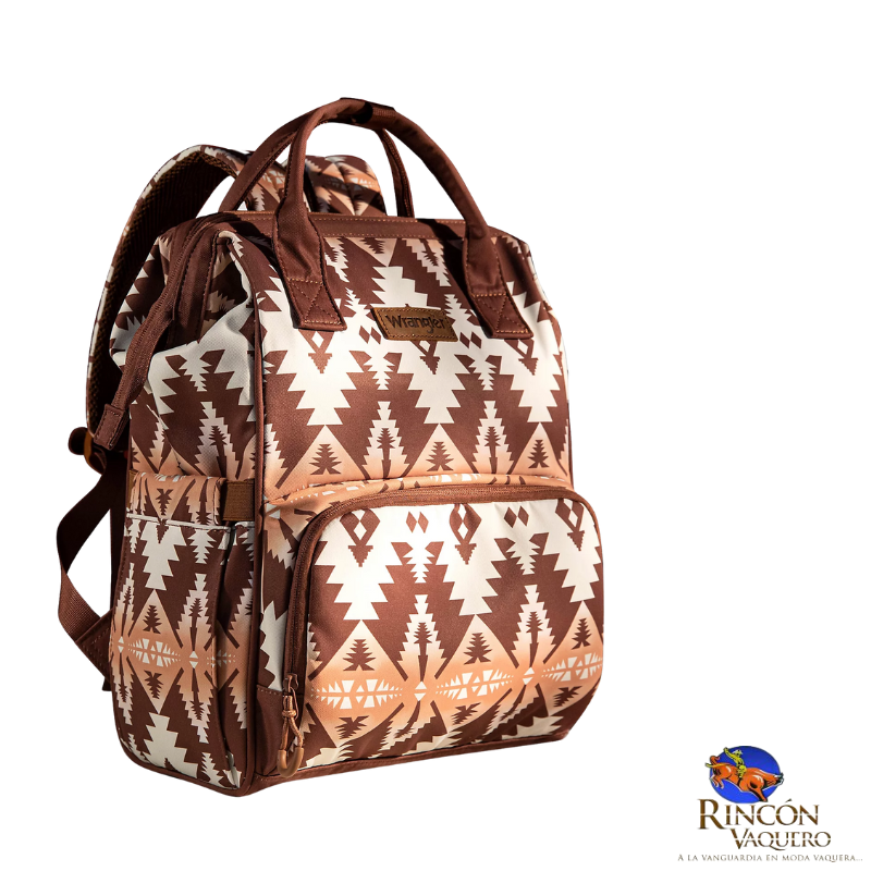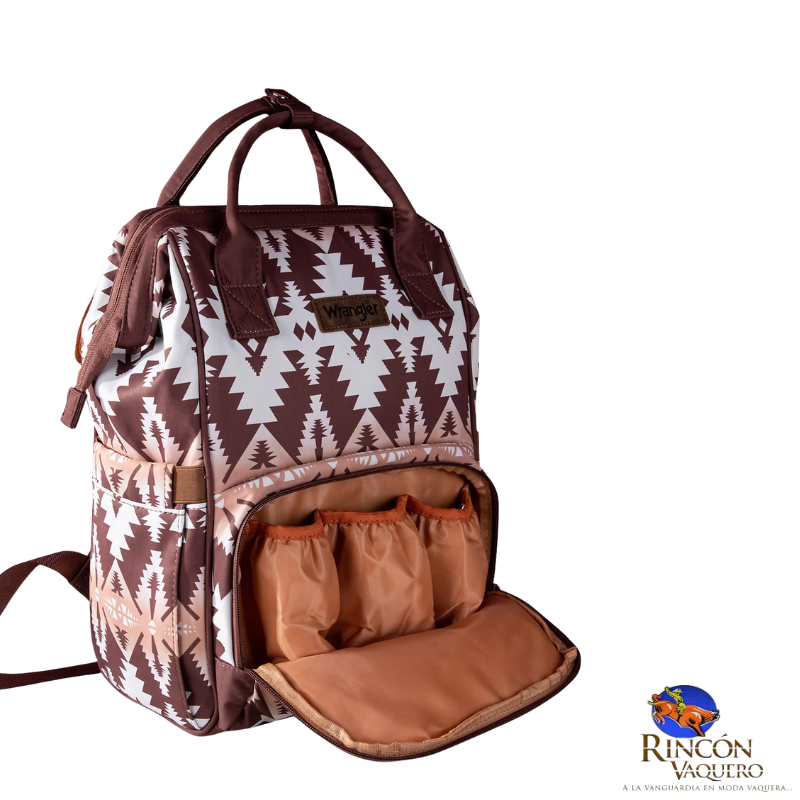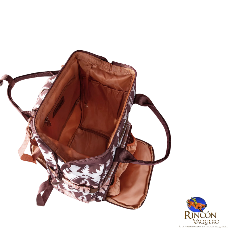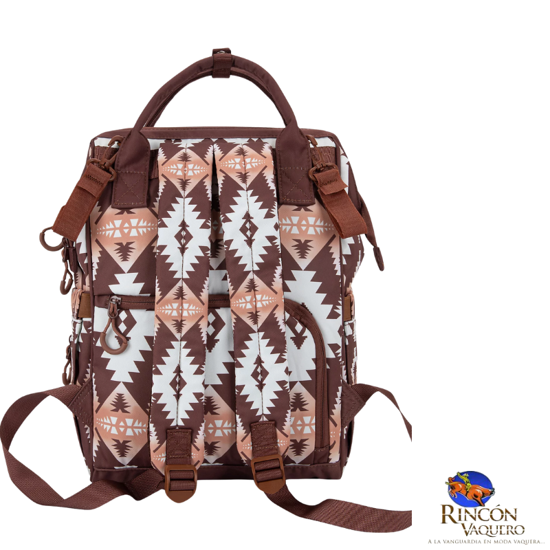 El espacioso compartimento de bolsillo abierto en la parte posterior brinda acceso a la mochila interior y a los bolsillos en ambos lados. Úselo como bolso de pañales, para viajar, hacer caminatas o para uso diario, mochila con diseño moderno del suroeste y asas de color sólido